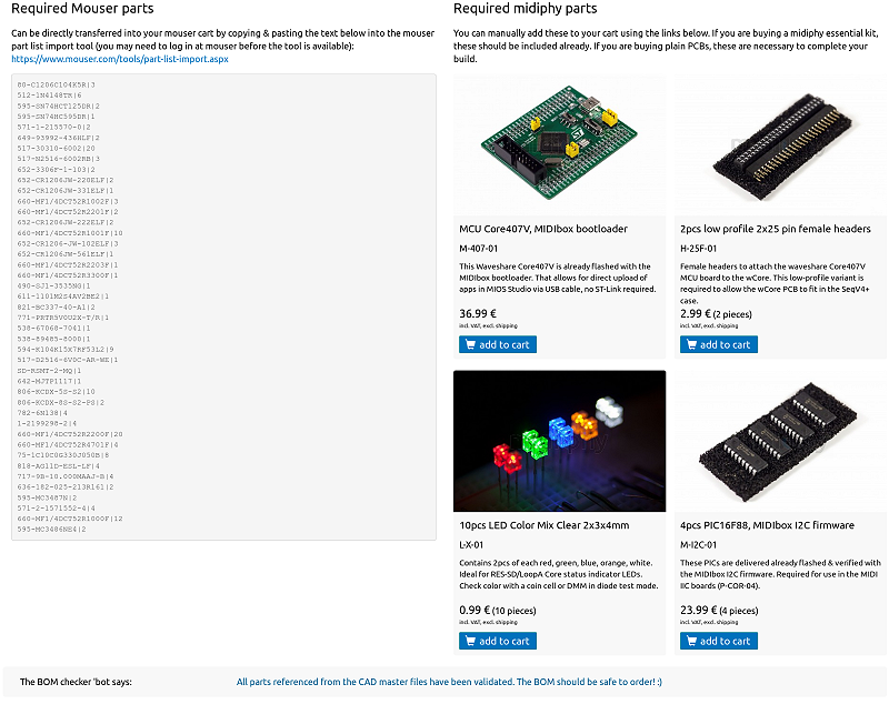 We're proud to present a nifty new tool, that aggregates all external parts required, even for kits containing many PCBs. Using it, you can just copy&paste all required external parts into your Mouser cart.