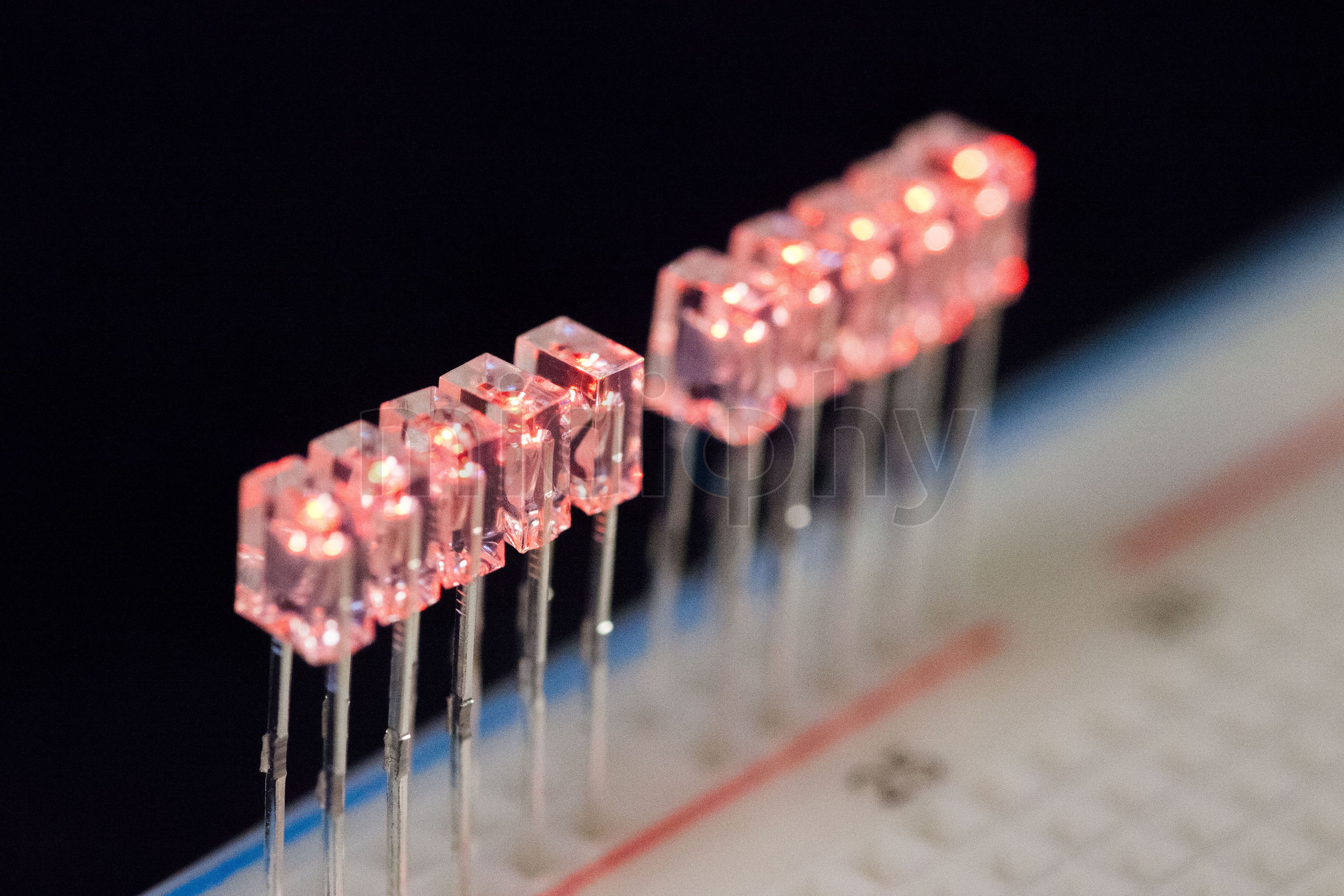 Red, 2x3x4mm, ~7mA current using a 470R current limiting resistor @5V